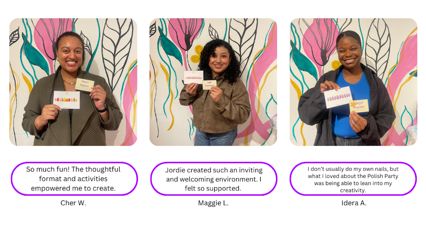 - Take home press-on nail application kits for each guest